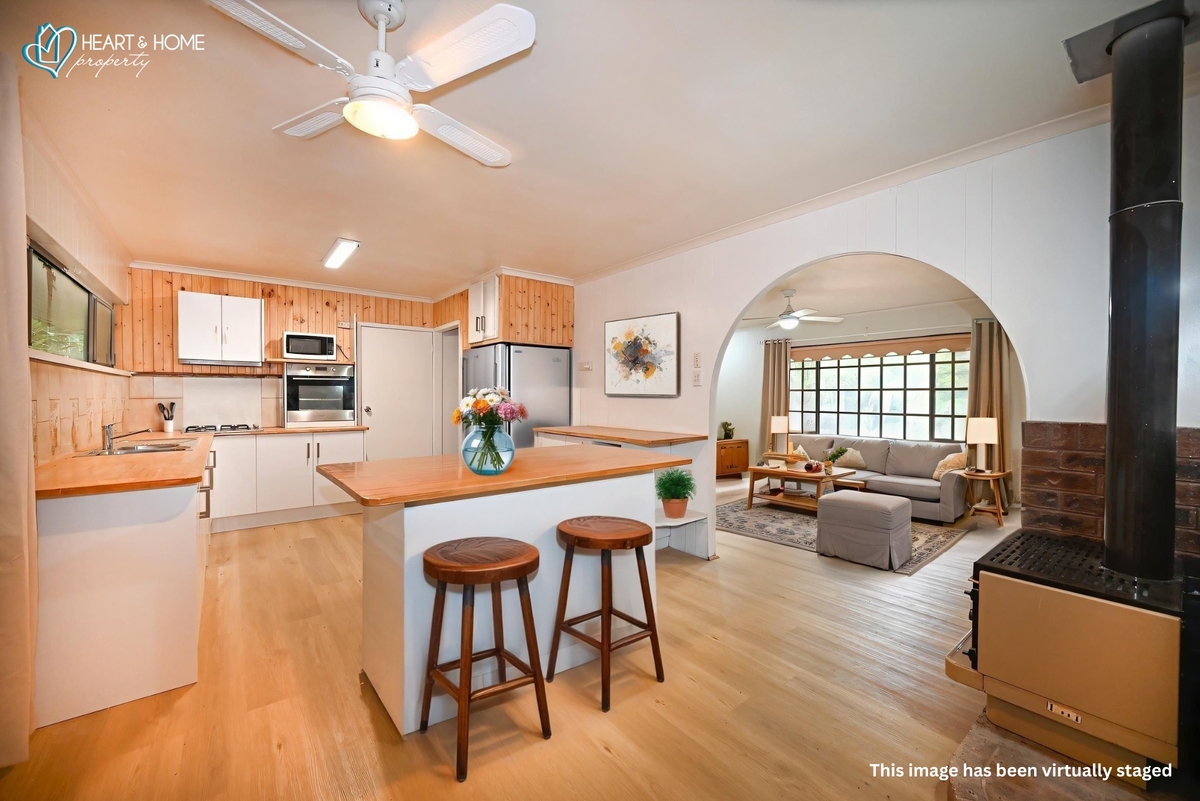 Inside, the hard work has been largely completed, with the interior being tastefully modernised and looking fresh throughout. Outside, there is a large outdoor entertaining area with an outlook onto the farmland on the back boundary. There are established garden beds with larger shrubs and trees. The gardens do require a freshen up and this is being left open for completion by the buyer to bring their personal touch to the home.